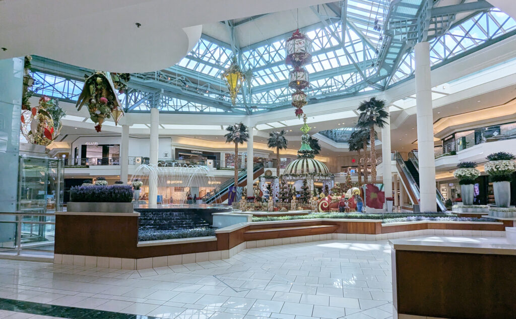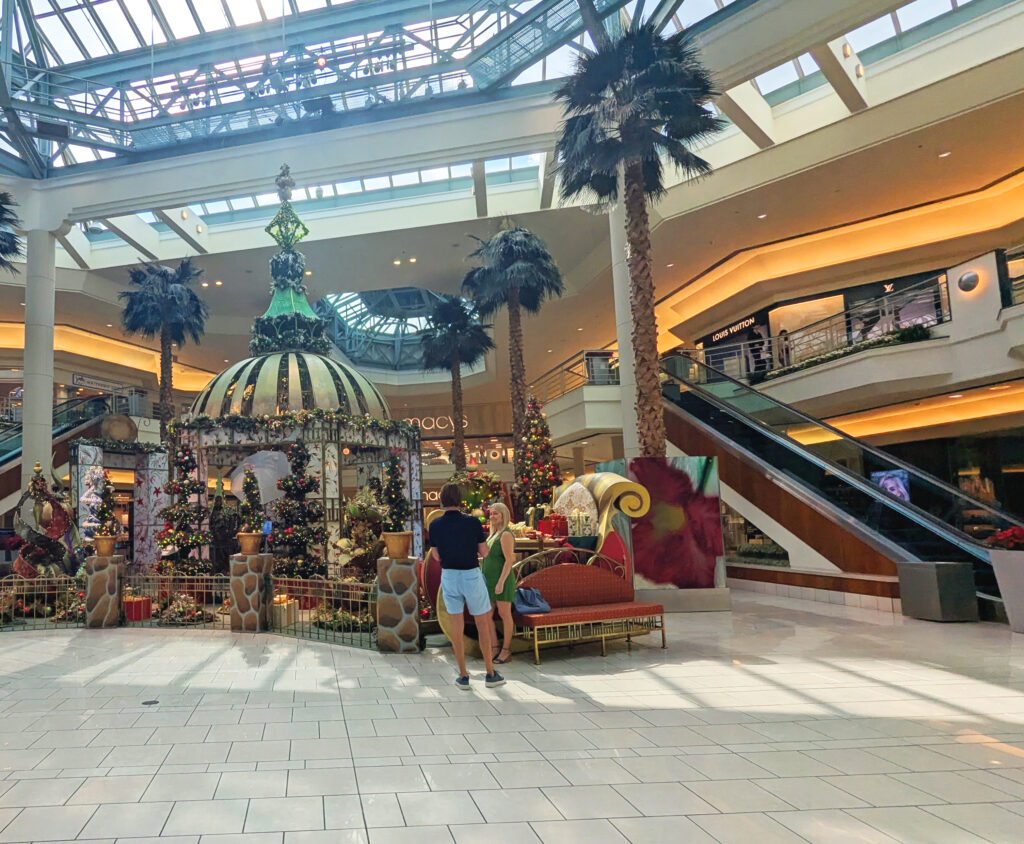 This very upscale mall impressed me not just for the decorations and the stores, but for the fact that there are so many seating areas. Usually mall management seems to expect you to shop, shop, and keep on shopping.